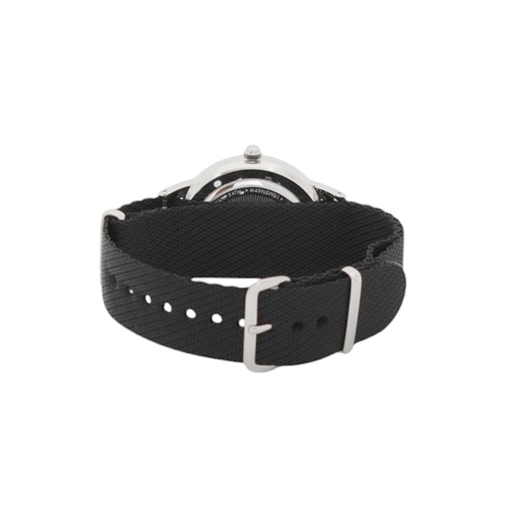 仕様:クオーツ、日常生活防水、カラー:オフホワイト(文字盤)、ブラック(ベルト)、シルバー(ケース)