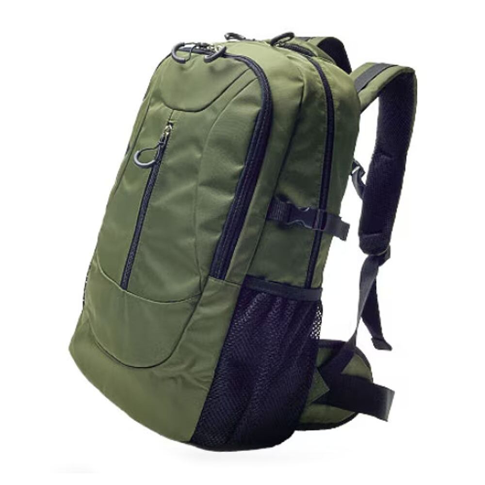 仕様:正面:ファスナーポケット、アウトポケット、正面アウトポケット内部:オープンポケット、ファスナーポケット、両側面:ネットポケット、メインルーム内部:クッション材入りオープンポケット、その他:チェストベルト、ウエストベルト、天ハンドル、容量:約19リットル、重量:約600g、カラー:カーキ