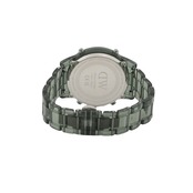 仕様クオーツ、日常生活防水、クロノグラフ、カレンダー(自動カレンダー)、10桁デュアルタイムディスプレイ、デイリーアラーム、1時間単位のチャイム、カラー:ブラック(文字盤)、ダークグリーン(ベルト)