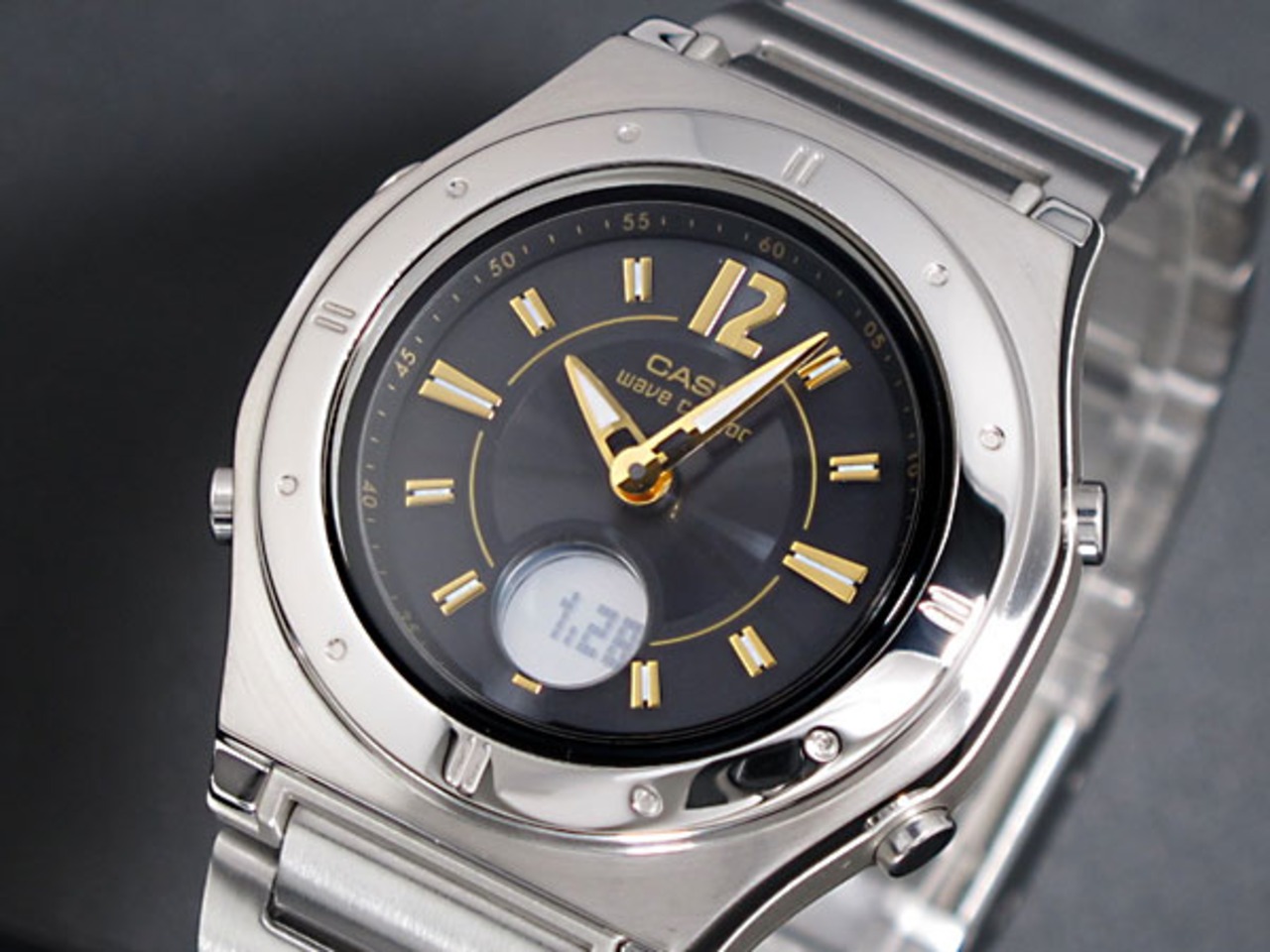 カジュアルなデザインでオン・オフ問わず気軽に使える女性用ソーラー電波時計です。 6時位置の液晶部分には曜日や日付のほかワールドタイムやタイマーなど便利な機能を搭載。また電波受信機能は日本のほかアメリカやヨーロッパの標準電波にも対応するマルチバンド5です。メタルバンド(LWA-M141D)はサイズ調整が簡単にできるフリーバックルを採用しています。