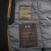 素材:表地:ポリエステル84% ビスコース16%、裏地:ポリアミド100%、中綿:グースダウン