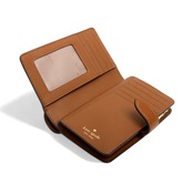 仕様:スナップクロージャー、内側:カードスロット9、スリップポケット2、IDウィンドウ、フルレングスの札入れ、ファスナー付き小銭入れ、ピンマウントロゴ、カラー:ブラウン