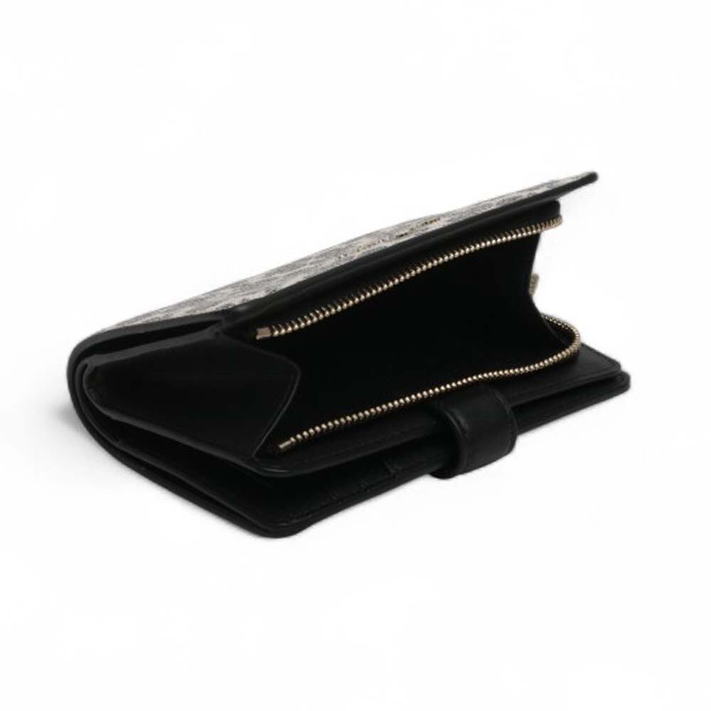 アラベスクのように連なるスペードフラワーを落ち着いたニュートラルトーンであしらった二つ折りウォレット。素材には耐久性に優れ傷や汚れに強いPVCを用い、角にやや丸みをつけることでフェミニンなムードを演出しています。薄型の作りながら、多数のカードスロットや小銭用ポケットなど装備も充実。