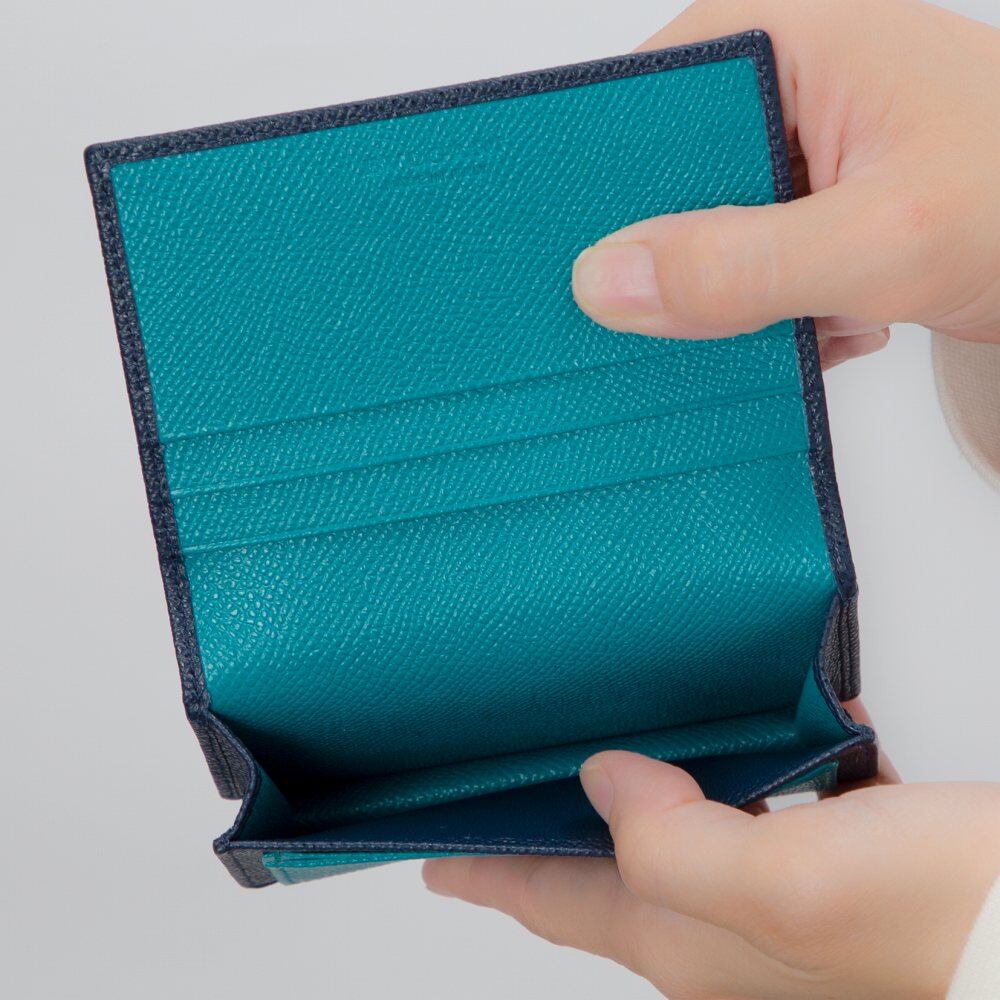 仕様:オープン式開閉、カード入れ×5、内側ポケット×2、名刺入れ×1、カラー:ネイビー グリーン