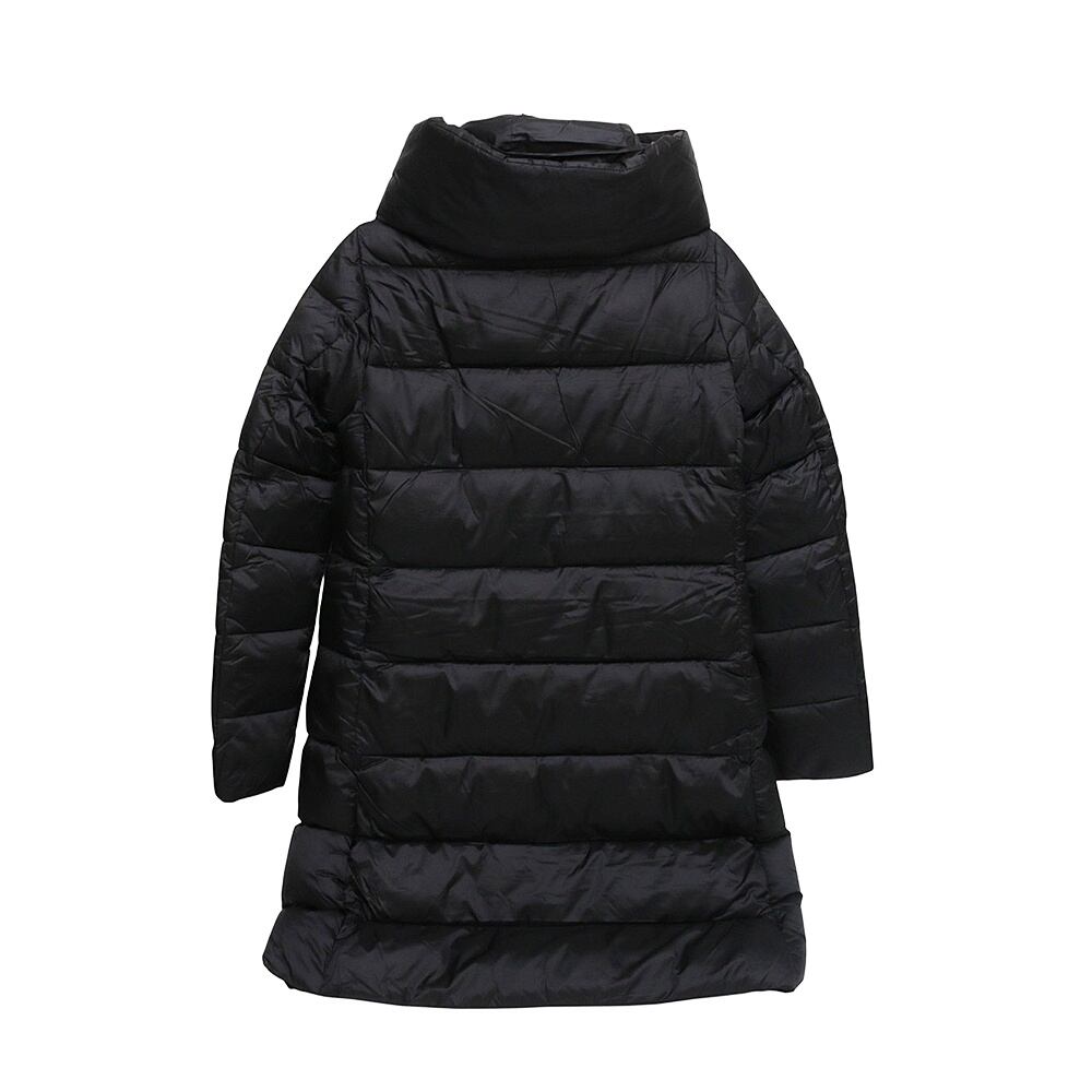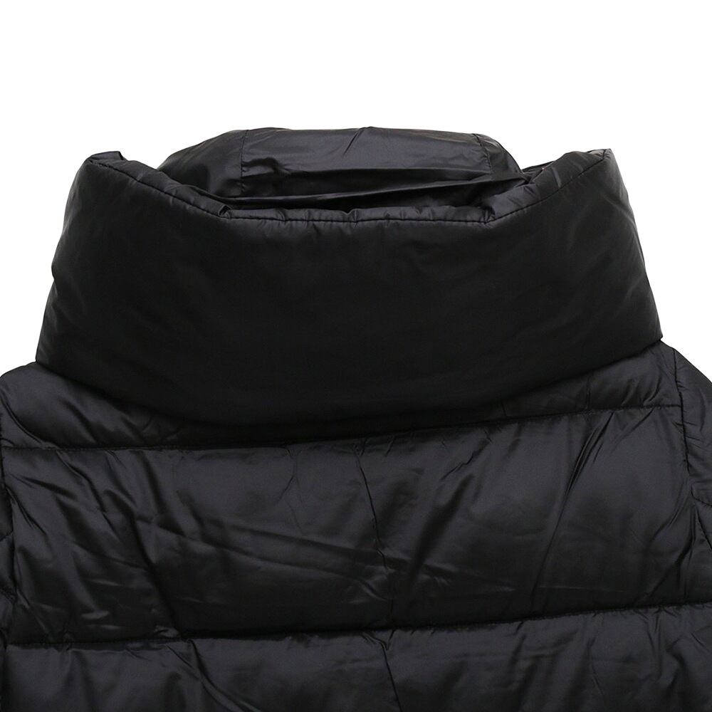 超ロングシルエットが特徴的な「LYSA」モデルのフード付きパファーコートは、最大限のカバー力と快適性を提供します。高い襟にはルシュ効果を施し、使用しない際はスナップボタンでフードを隠す設計となっています。サイドポケットは目立たないジッパーで固定され、クリーンなデザインを維持。左袖のシグネチャーラウンドロゴとトーンオントーンのジッパープルが、SAVE THE DUCKならではの個性的なアクセントを加えています。