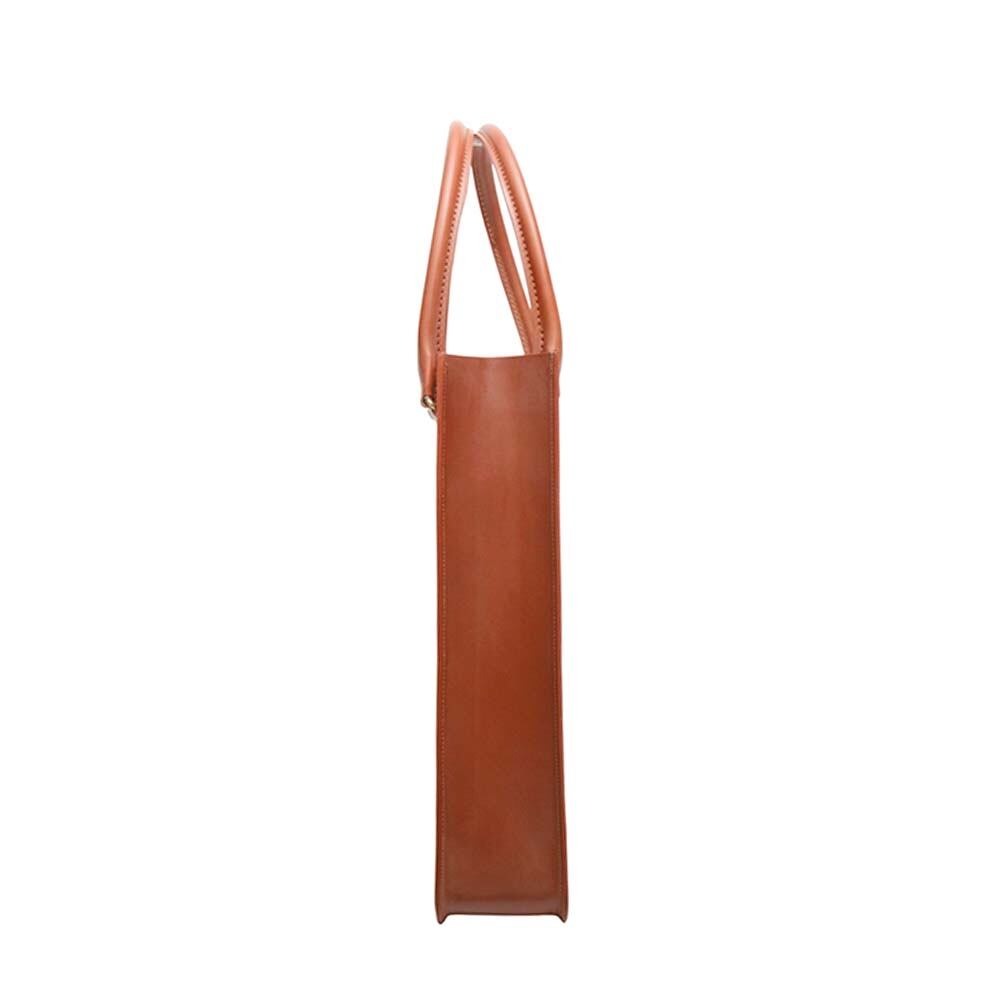 シンプルで普段使いに最適な、A4サイズがゆとりを持って入る縦長式トートバッグ。バッグのマチ (厚みは約8cm。パッと置いた際に自立するので、訪問先で足元に置いても安心な仕様。ハンドルとボディーを繋ぐのは、馬具で使用される英国製のアンティークブラスのパーツ。堅牢さに優れ、同じ馬具由来のブライドルレザーとの相性も抜群です。バッグそのものがシンプルな作りになっているため、ビジネスシーンにはもちろん、休日などオンオフ問わずお使いいただけます。使い込むほどに柔らかくなり、深く増していく風合いを是非お楽しみください。