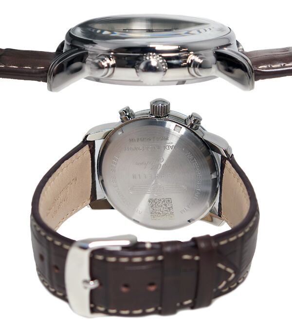 仕様:クオーツ、5気圧防水、クロノグラフ、100周年記念モデル、日付カレンダー、スモールセコンド、12時間アラーム、タキメーター、MADE IN GERMANY、カラー:アイボリー(文字盤)、ダークブラウン(ベルト)