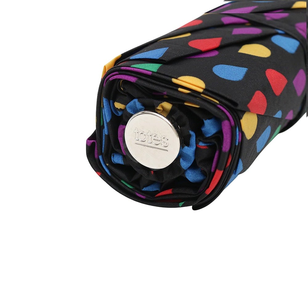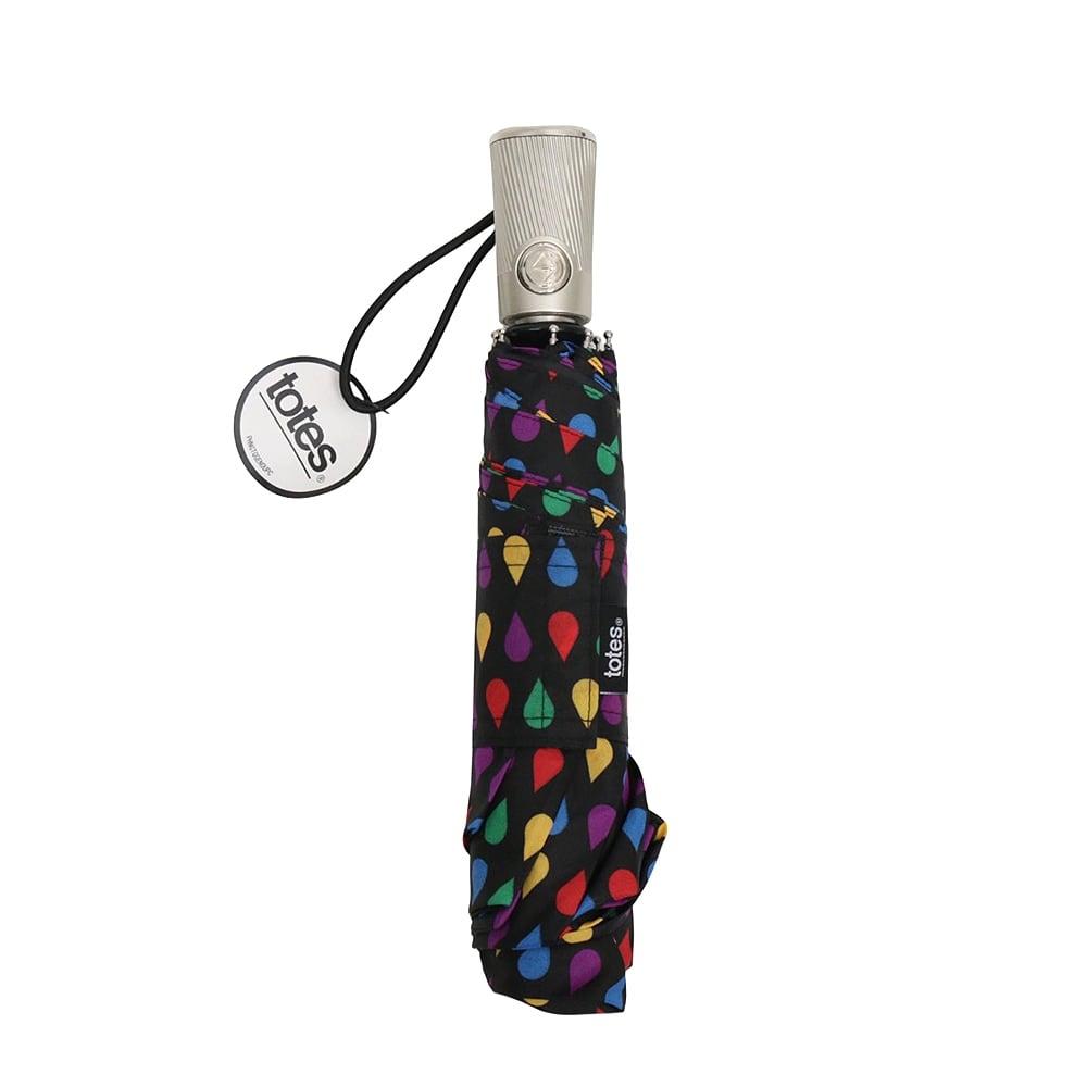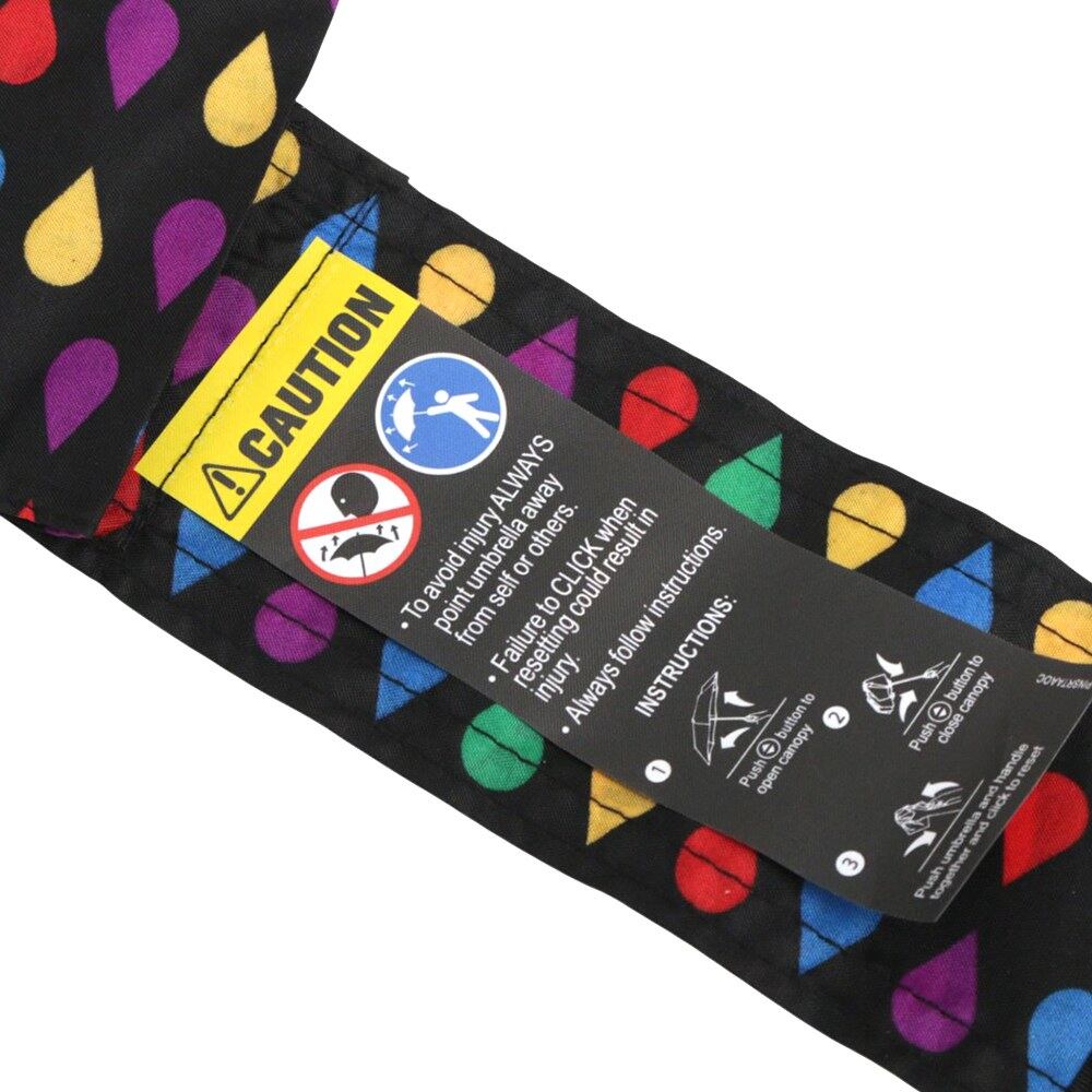 仕様:自動開閉機能、SunGuard:UPF50+で有害な紫外線を遮断し、体感温度を最大30℃下げる効果、撥水コーティング加工:水滴が転がり落ちる仕様、人間工学に基づいたハンドル、幅広の面ファスナー付きストラップ、カラー:ブラック×ドロップ(マルチカラー)※傘袋は付属しておりません。