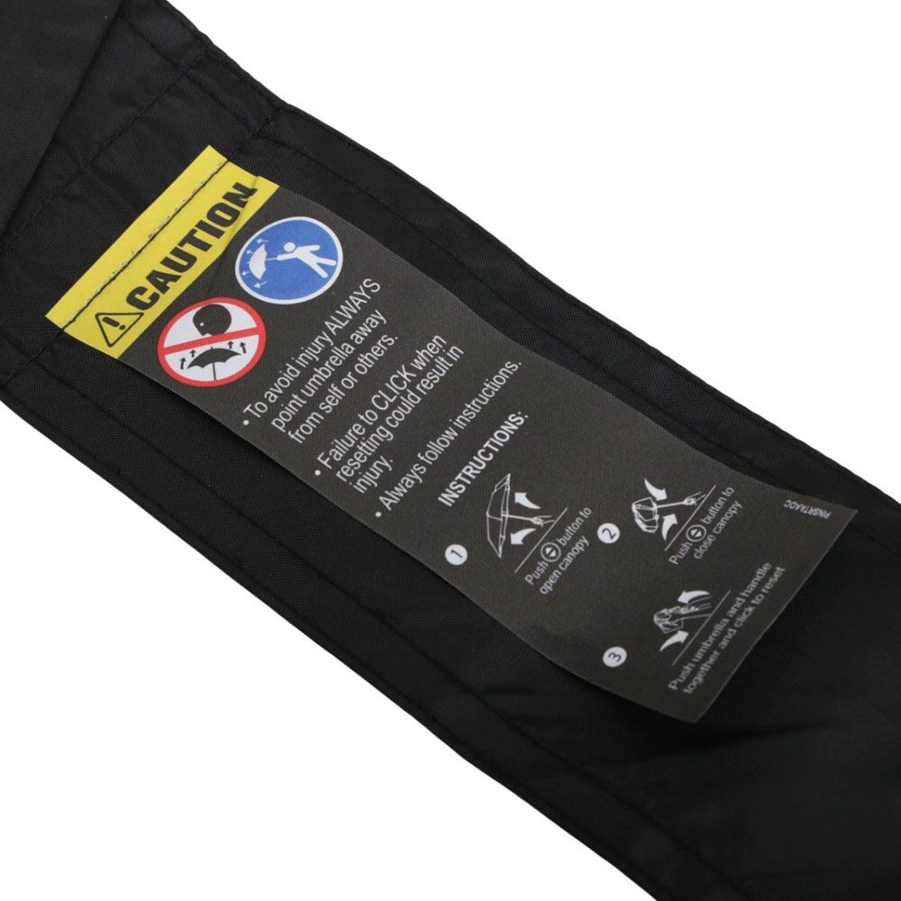 仕様:自動開閉機能、70MPH(時速約113km)までの強風にも耐える防風設計、通気性キャノピー(風を逃がす構造)、SunGuard:UPF50+で有害な紫外線を遮断し、体感温度を最大30℃下げる効果、撥水コーティング加工:水滴が転がり落ちる仕様、人間工学に基づいたハンドル、幅広の面ファスナー付きストラップ、カラー:ブラック