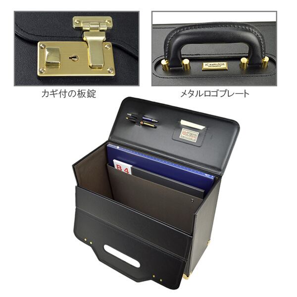 仕様:本体内部ポケット型仕切り、ペン差し、カード入れ、錠前付き板状ロック、底鋲付き、A3サイズ対応、カラー01-黒