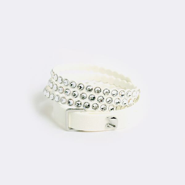 やわらかなアルカンターラ(人工皮革)にきらめくゴールドのクリスタルをあしらい、スワン形のボタンが特徴の調節可能なクロージャーを施したマストハブなデザインです。単独のブレスレットやチョーカーとして身につけたり、お手持ちのPower コレクションのブレスレットと重ねづけして自分だけのアームパーティーを楽しむこともできます。