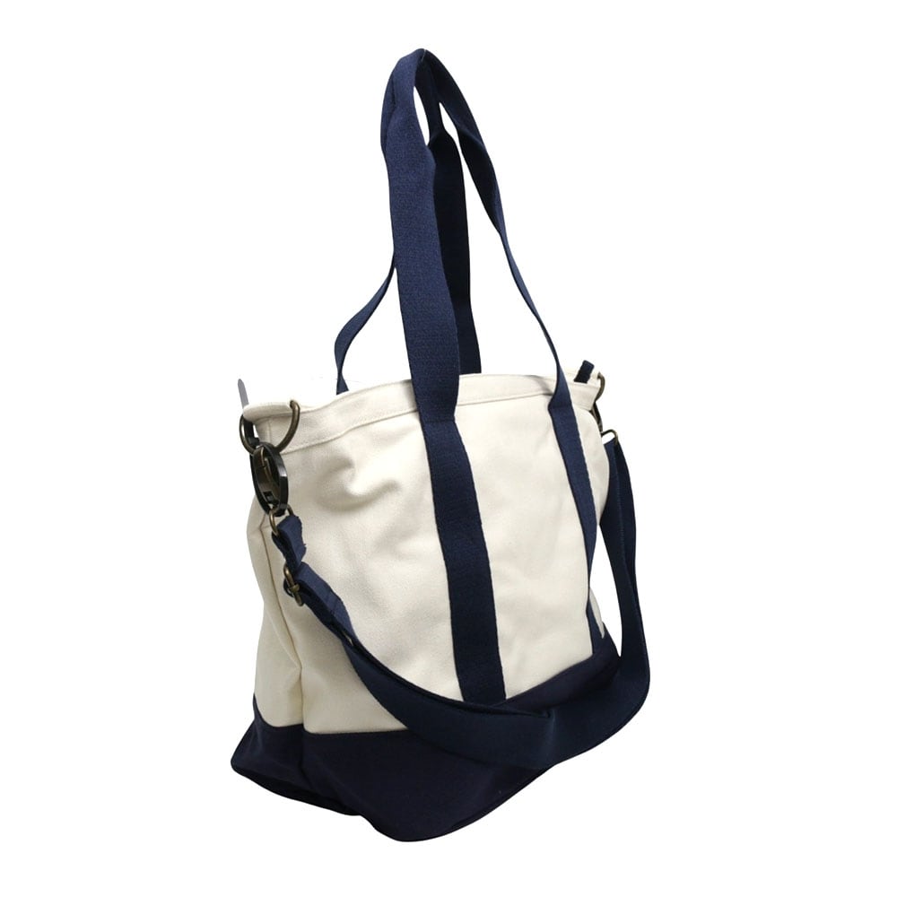 仕様:ファスナー開閉、内側:ファスナーポケット×1、斜めがけ可、ショルダー取り外し可、カラー:WHITE/NEWPORT NAVY(ホワイト×ネイビー)