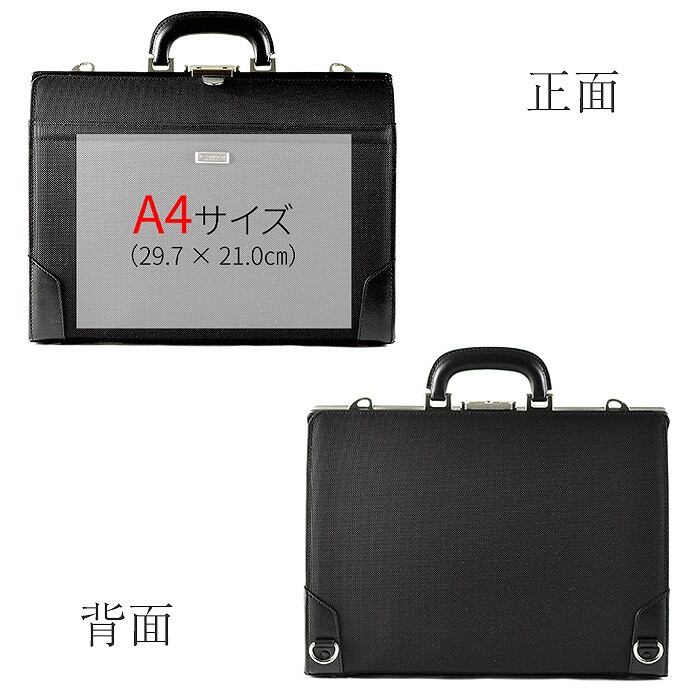 できるビジネスマンに人気の3WAYタイプのダレスバッグ。A4ファイル対応で大事な書類も折らずにすっきり収納可能!片手で操作ができるワンタッチ錠前は専用のカギ付き。肩あて付きショルダーベルト1本、リュックベルト2本付き。