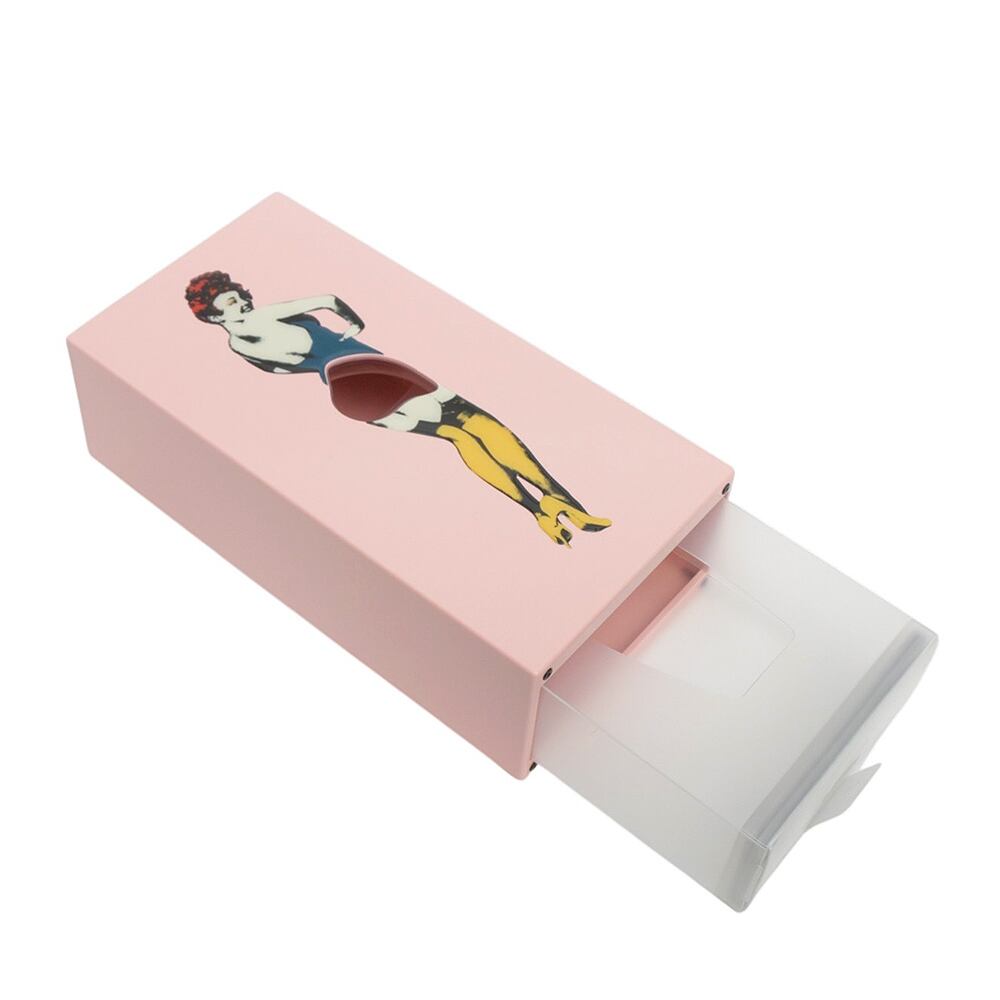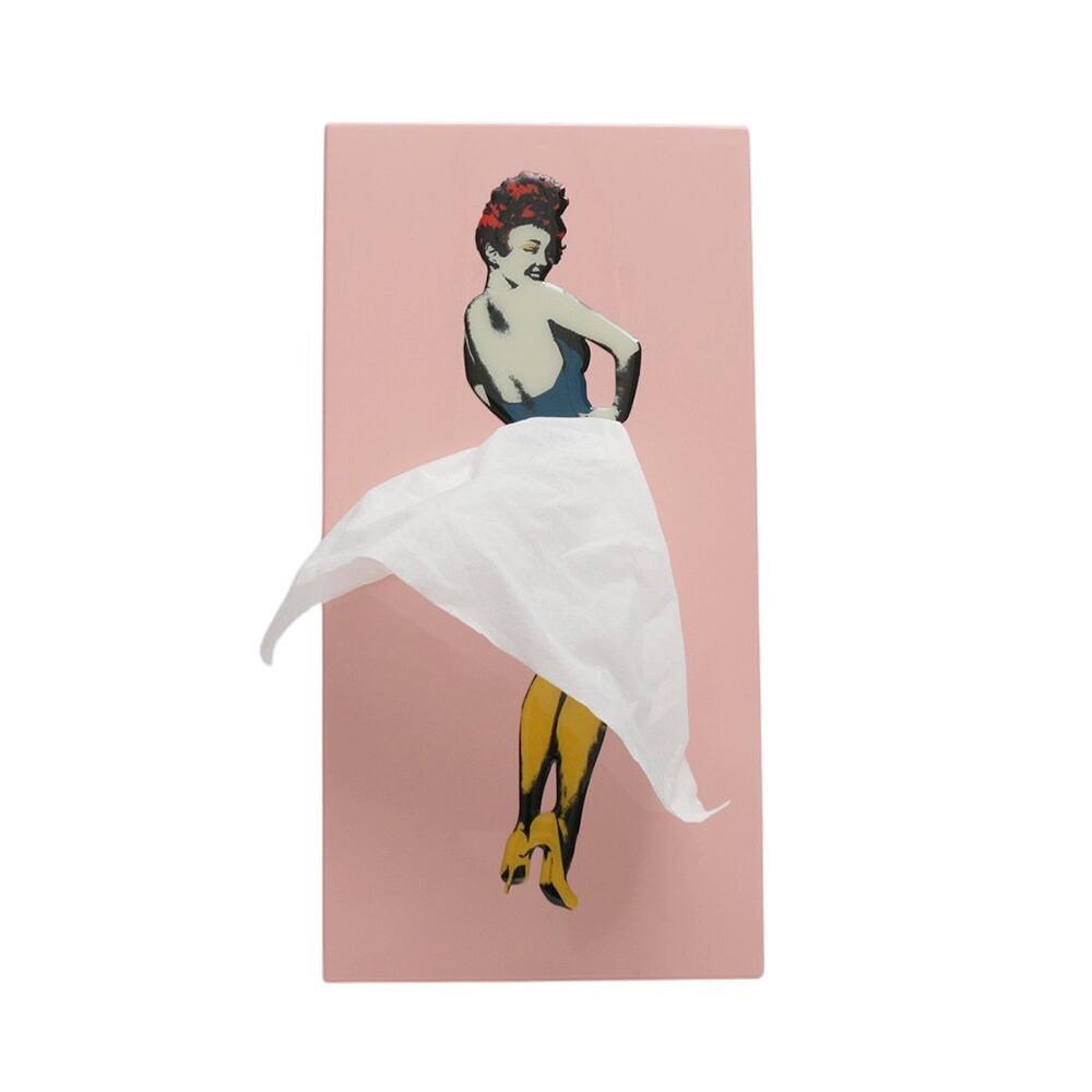韓国発のインテリア雑貨ブランド。フラッパー・ティッシュは、普通のティッシュに女性のスカートがふわりと風になびくという要素を加え、箱からティッシュを取り出す度に女性のスカートを脱がせるような感覚を与えるユニークなテッシュケースです。ティッシュが残り少なくなったときにも取り出しやすい構造で、リビング、パウダールーム、デスクトップサイド、キッチンなど、どんなインテリアにもマッチします。韓国インテリアらしいポップなカラーリングがとっても可愛いです。