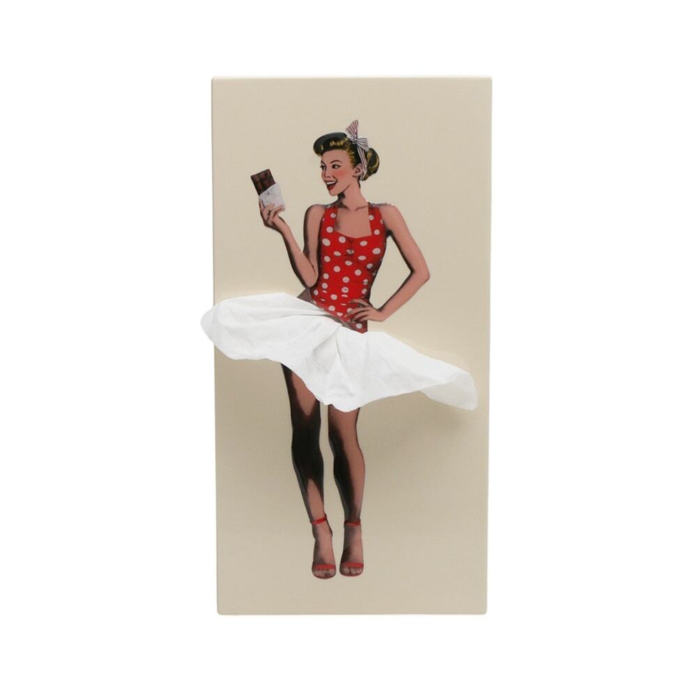 韓国発のインテリア雑貨ブランド。フラッパー・ティッシュは、普通のティッシュに女性のスカートがふわりと風になびくという要素を加え、箱からティッシュを取り出す度に女性のスカートを脱がせるような感覚を与えるユニークなテッシュケースです。ティッシュが残り少なくなったときにも取り出しやすい構造で、リビング、パウダールーム、デスクトップサイド、キッチンなど、どんなインテリアにもマッチします。韓国インテリアらしいポップなカラーリングがとっても可愛いです。